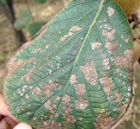 病菌借風(fēng)傳播,氣孔、傷口入侵,常溫高濕時(shí)發(fā)病重。本病為雨水多、濕度大的南方獼猴桃栽培區(qū)主要的病害之一。