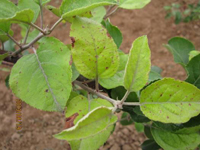 不同蘋果品種的感病性有明顯差異。高溫多雨,當氣溫在10-20℃,光照較強,癥狀較重。樹勢衰弱時,癥狀較重,幼樹比成株易發病。土壤干旱,水肥不足時發病重。