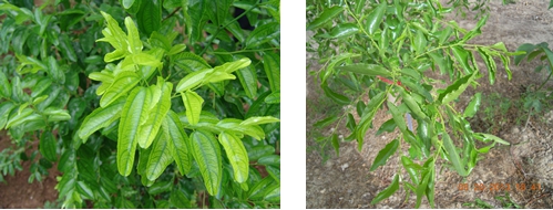 2013年4月下旬,在陜西大荔楊家棟冬棗園,針對缺素冬棗樹,噴施國光絡微2次,間隔15天噴施一次,2013年5月20日,觀察缺素棗樹,葉片轉綠,棗吊生長正常,花蕾分化好。