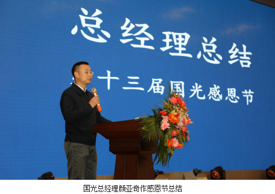 國(guó)光總經(jīng)理顏亞奇作了感恩節(jié)總結(jié),表示:“一個(gè)真正愛護(hù)員工的企業(yè),會(huì)對(duì)員工的健康、家庭、子女各方面進(jìn)行關(guān)心,此次我們擴(kuò)展感恩節(jié)的內(nèi)容及形式,邀請(qǐng)國(guó)學(xué)老師幫助員工建立良好的家風(fēng)家教;通過案例幫助員工教育好子女;進(jìn)行了職業(yè)健康、法制、防止上當(dāng)受騙等教育,都是公司對(duì)員工及員工家屬具體感恩行動(dòng)的表現(xiàn),這些教育起到的作用遠(yuǎn)大于物質(zhì)和金錢。國(guó)光是一個(gè)大家庭,國(guó)光每一位員工都是大家庭中的一份子,只有每一位成員的小家過好,國(guó)光這個(gè)大家才會(huì)好,我希望全體國(guó)光人都能從本次感恩節(jié)教育中得到啟發(fā),從中受益,為自己的‘小家’也為共同的‘大家’活出更好的自己,貢獻(xiàn)更多的力量。”