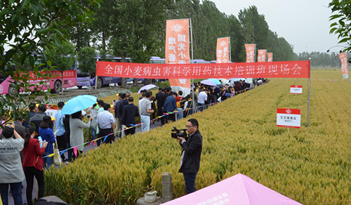 會上,中國農科院麻類研究所所長,中國植保學會理事長陳萬權作了《我國小麥病害發生特點及防控技術研究》專題報告;中國農科院植保所研究員李香菊作了《小麥植物生長調節劑增產技術研究》講座。圍繞小麥科學用藥、提質增效的主題,河南漯河市郾城區植保站、河南淮陽縣植保站、安徽蒙城縣植保站就當地國光小麥套餐的試驗示范情況作了集中匯報。結論為:國光小麥套餐對于促進小麥多分蘗、提高光合效率、調控小麥營養生長和生殖生長,促進養分轉移,促成大穗、飽滿,抗倒伏,防病治病,延長功能葉壽命,從而達到提高小麥產量和改善品質的效果表現明顯,值得大面積推廣使用。