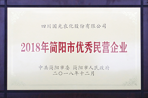 公司被授予“2018年簡陽市優秀民營企業”稱號