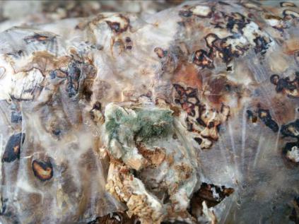 春季溫度回升,菌棒上殘留的菇根等雜物易感染霉菌,發(fā)生霉變。因此,采菇后,要及時清除菌棒上殘留的菇根等雜物,防止雜菌感染。春季危害香菇常見的害蟲主要有菇蚊、菇蠅等,可在出菇間隔期使用氯氰菊酯等低毒農藥進行防治。