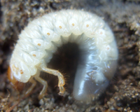 蠐螬體肥大,體型彎曲呈C型,多為白色,少數為黃白色。頭部褐色,上顎顯著,腹部腫脹。體壁較柔軟多皺,體表疏生細毛。頭大而圓,多為黃褐色,生有左右對稱的剛毛,剛毛數量的多少常為分種的特征。如華北大黑鰓金龜的幼蟲為3對,黃褐麗金龜幼蟲為5對。蠐螬具胸足3對,一般后足較長。腹部10節,第10節稱為臀節,臀節上生有刺毛,其數目的多少和排列方式也是分種的重要特征。